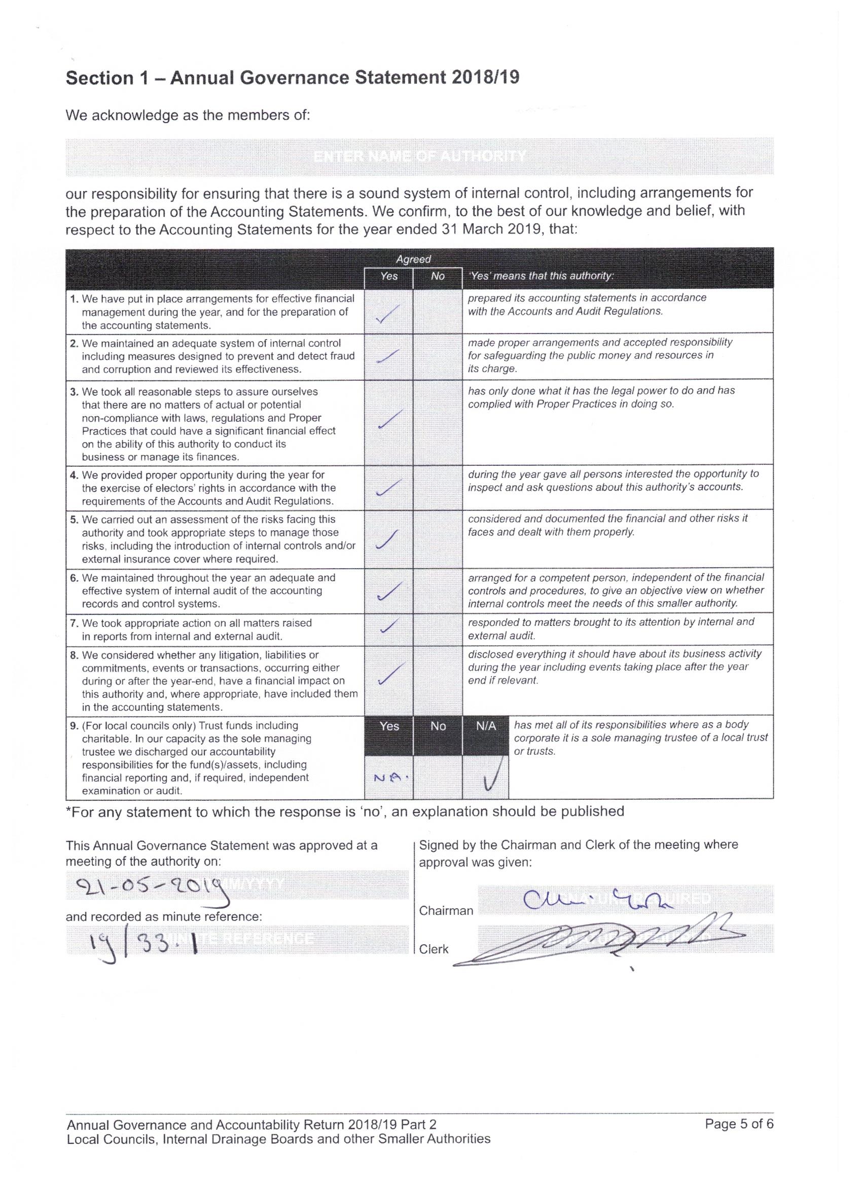 Statutory Documentation for Year Ended 31 March 2019